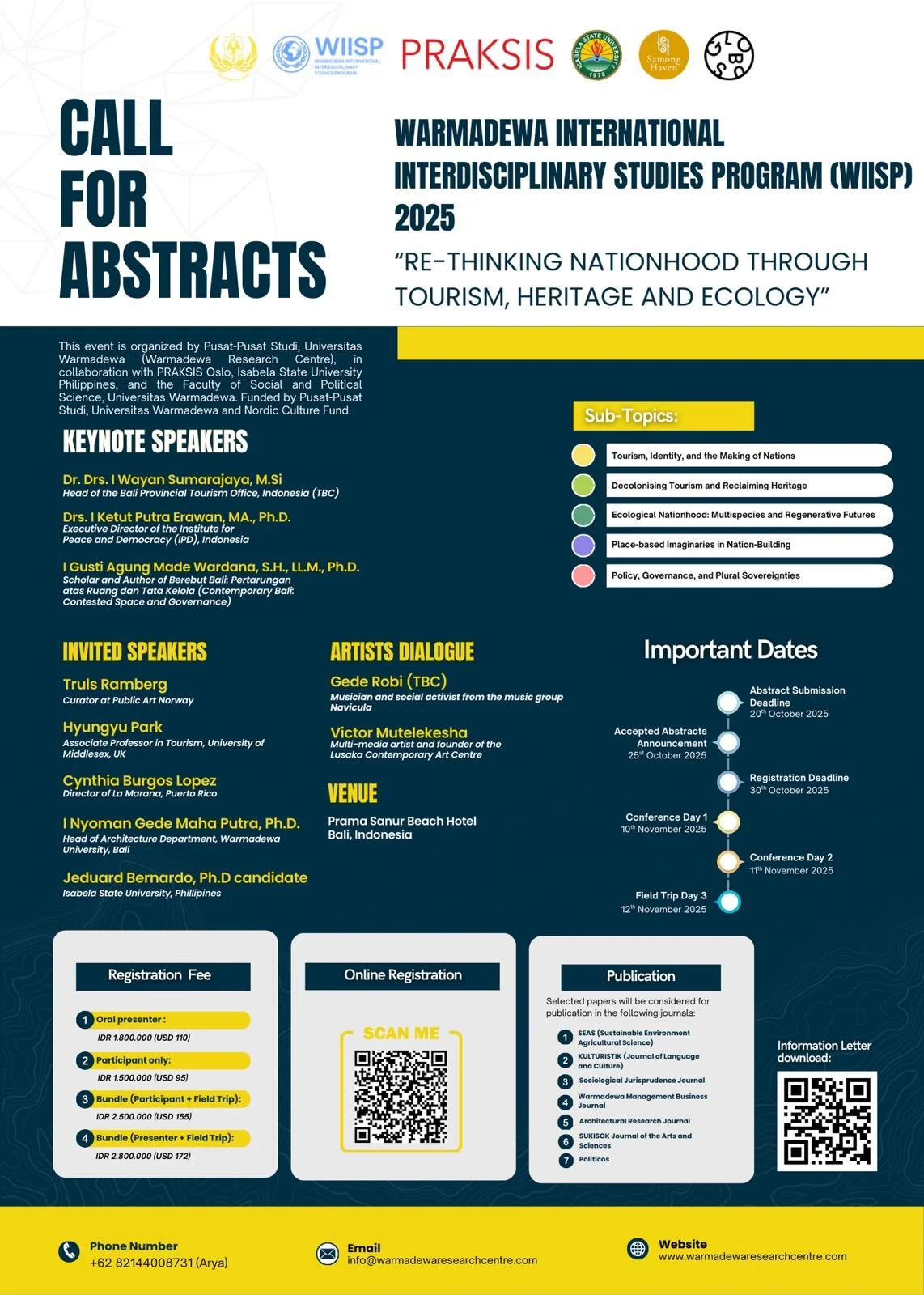 The Rethinking Tourism Network and Warmadewa International Interdisciplinary Studies Programme (WIISP) invite artists, achademics, community organisers and practitioners to submit abstracts for presentations, workshops or other contributions. The conference will explore the ways that tourism shapes, contests and reimagines nationhood in relation to cultural heritage and ecological transformation.