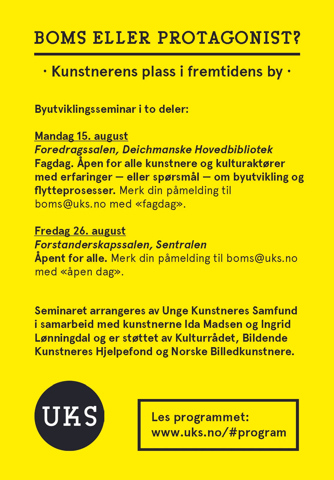 Open to those with relevant experience - or questions - regarding urban development and relocation processes. The seminar is free, including lunch, but places are limited. To reserve a seat email boms@uks.no.