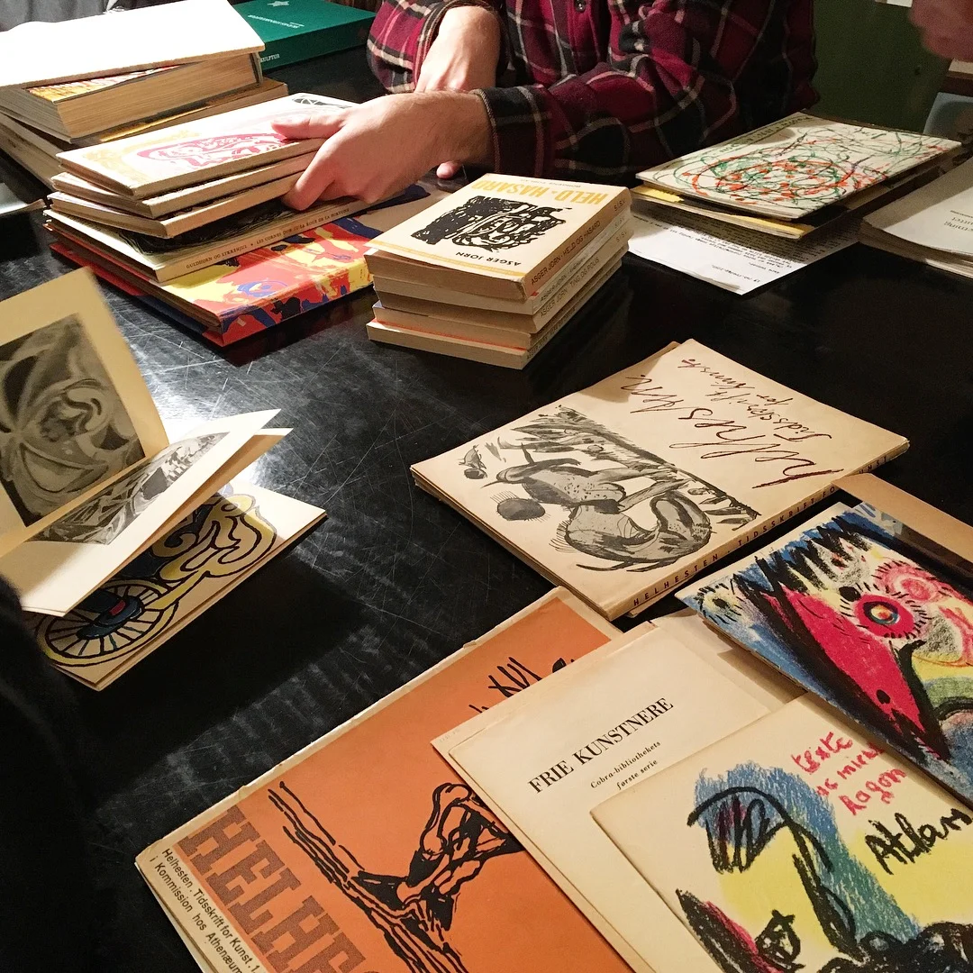 Following a visit to Guttorm Guttormsgaards Archive, the resents where offered the opportunity to work hands on with the archive and to later return to present and exhibition of their work. For this the group presented individual and collective works, including a performance specially staged in one of the archive's attics, and a collectively produced publication consisting of a set of nine volumes produced individually by each participating artist and PRAKSIS with two constraints: an A5 format and a three-week working time. The individual volumes come together as a single collective edition.