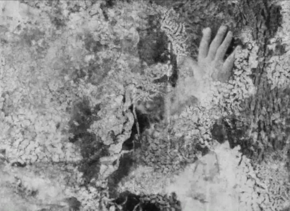 Damaged still image from a 1987 film by Victor Kyzyma (damage caused by agricultural lime), Urban Media Archive, Center for Urban History of East Central Europe